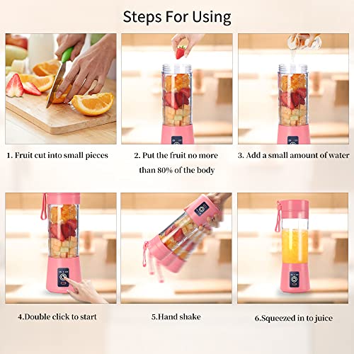 Frullatore Portatile,Mini Frullatore Elettrico Usb 380ml, con Filtro e 6 Lame in Acciaio Inox, Mini Frullatore Portatile per Frullati e Succhi, per Viaggi, Ufficio, Palestra, Famiglia (Rosa)
