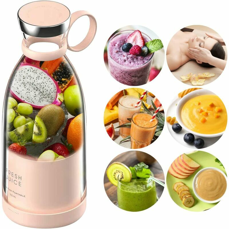 Potente funzione 1 - La potenza nominale è di 50 W, la tensione nominale è di 7,4 V e la testina di taglio a quattro pagine è realizzata in acciaio inossidabile SUS304 per uso alimentare, che è durevole e ha un'eccellente capacità di agitazione, quindi può schiacciare rapidamente la polpa. Nessuna perdita di fibre alimentari, gusto delicato e grasso. 【Potente caratteristica 2】Il motore ruota circa 20.000 volte al minuto e ci vogliono solo 35 secondi per offrirti frullati freschi, proteine/frullati, succhi di frutta freschi, maschere per il viso, trattamenti per il viso, pappe e altro ancora. Si prega di tagliare la frutta/verdura in piccoli pezzi per una migliore miscelazione. I mini frullatori non sono adatti per cubetti di ghiaccio di grandi dimensioni. 【Portabilità di ricarica USB】Questo frullatore personale ha una batteria ricaricabile USB integrata da 1400 mAh, che può essere facilmente caricata da qualsiasi luogo. altre fonti di alimentazione USB. Il frullatore può essere