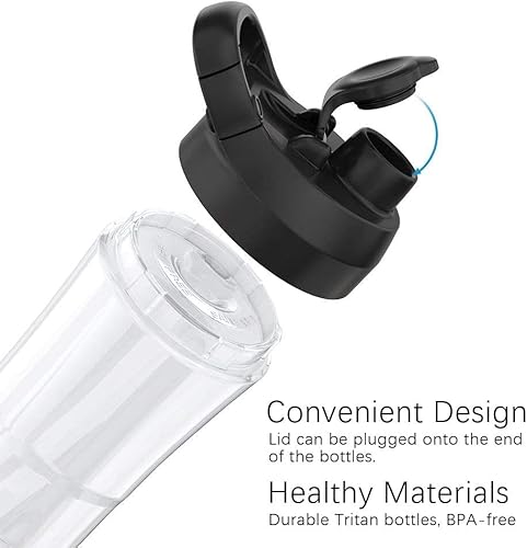 2 Tazze da Viaggio Coperchio - il nostro frullatore personale viene fornito con 2 bottiglie portatili in Tritan da 20 once con coperchi da viaggio, materiale per alimenti, senza BPA, in grado resistere temperature dell'acqua -20 ℃ ~ 95 ℃. Avvita il tappo del beccuccio per goderti frullati, succhi e frappè, trasformandoli in bevande da portare sempre con te.