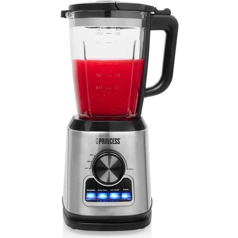 Frullatore Solid Pro Princess 212094 ideale per chiunque desideri preparare rapidamente frullati, zuppe o salse salutari. Il potente frullatore da 1400 W è dotato di un selettore di velocità continuo, 3 programmi e una funzione a impulsi. Grazie alla caraffa in vetro, alle parti rimovibili e alla funzione di pulizia automatica, il frullatore è semplicissimo da pulire. Il frullatore può mescolare, sbattere, ridurre in purea, tritare, macinare e mescolare, grazie al blocco lame super robusto con 6 lame in acciaio inox. Desideri aggiungere qualcosa? Potrai farlo senza sforzo grazie alla pratica apertura nel coperchio. Accessori in dotazione: Caraffa in vetro da 1750 ml Blocco lame rimovibile