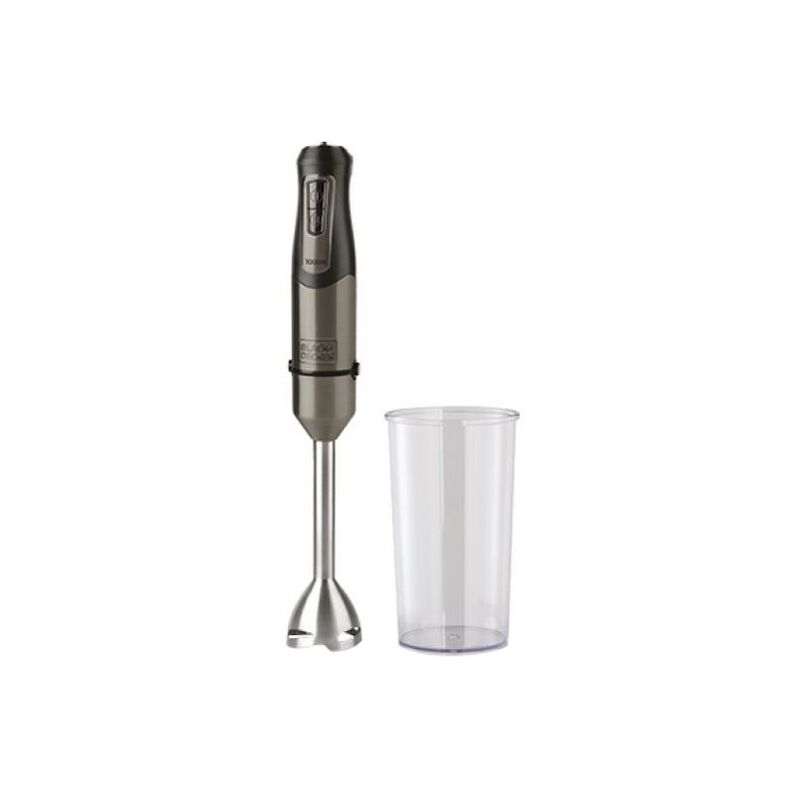 Potenza 1000 Watt, 20 velocita' + turbo, 4 lame in acciaio inox ad alte prestazioni, corpo in acciaio inox con finitura anti-impronta, cono antispruzzo per ridurre gli schizzi. Bicchiere graduato
