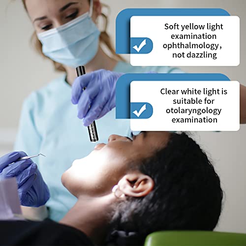 [Lampada diagnostica pupilla] La lampada per pupilla ha due fonti di luce, fredda e calda, e la luce bianca è luminosa e lucida, adatta per il controllo della gola. La luce gialla ha un colore delicato ed è adatta per l'esame della pupilla. Può soddisfare le tue esigenze quotidiane.