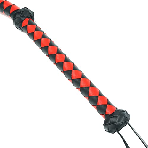 Frusta in pelle rossa + nera, lunghezza totale 142 cm, uno strumento per aumentare la felicità e liberare lo stress. (shi364)