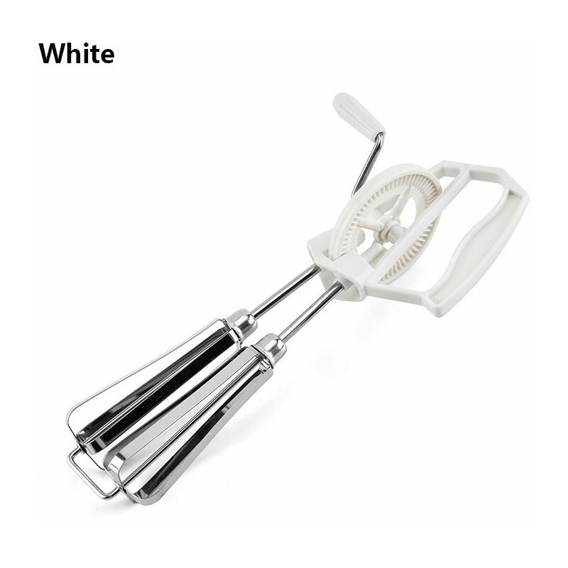 Una tradizionale frusta rotante con impugnatura laterale. Presenta lame a bordo piatto in acciaio inossidabile per una migliore sbattitura.