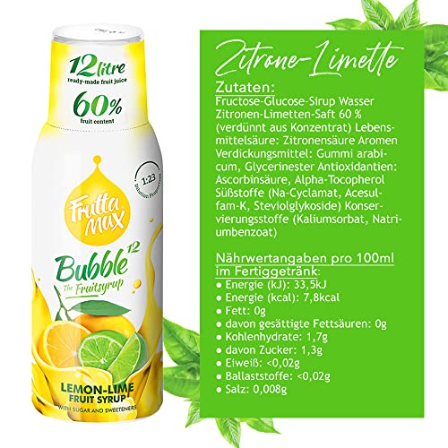 FruttaMax - Concentrato Sciroppi Di Frutta | Meno zucchero | con il 60% di contenuto di frutta | adatto per macchina per bibite 500 ml (Limone-Lime)