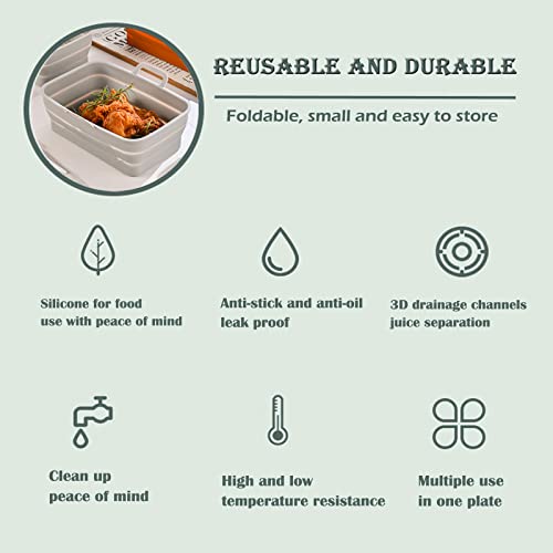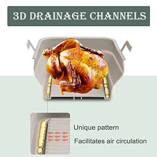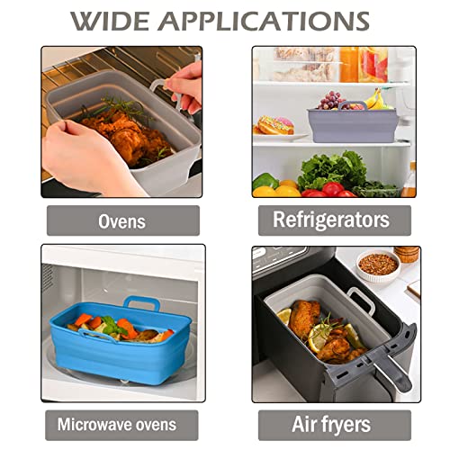 Ampio campo di applicazione: la dimensione di questo cestello in silicone per friggitrice ad aria è di 19,5 x 12,7 x 7 cm/7,68 x 5 x 2,76 pollici, compatibile con la maggior parte delle friggitrici ad aria quadrate presenti sul mercato e utilizzabile anche in forni, microonde e congelatori, ecc.