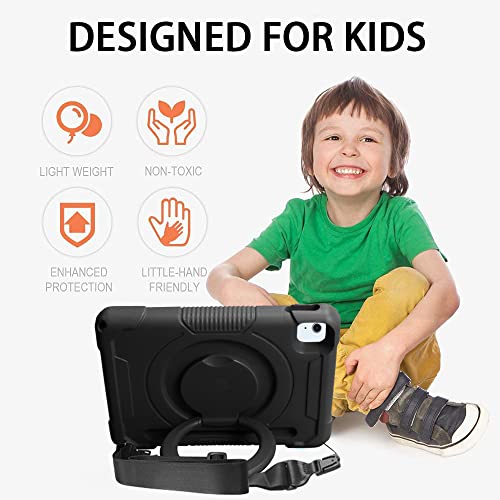 FSCOVER Cover per iPad Air 5 2022/iPad Air 4 2020/iPad Pro 11 3/2/1 Generazione Leggermente Flessibile, Antiurto, Supporto / Tracolla Ruotabile a 360 °, Copertura Integrale per Ragazzo e Ragazza, Nero