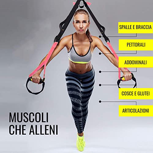 FSSSP3XR Suspension Strap Fitness Training System | Allenamento Funzionale, Plank, Esercizi in Sospensione Palestra | Trainer Band Cinghie | Yoga Gym Door Band | Bande Ancoraggio Porta Rosa
