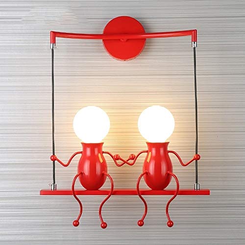 FSTH Bambola di Moda Semplice Swing Bambini Lampada da Parete Soggiorno Moderno Camera da Letto Creativa Applique da Comodino Luce Vacanza/Regalo di Nozze (Rosso-2)