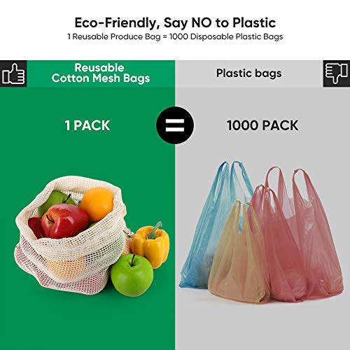 Fstoption Sacchetti riutilizzabili, Borse di Frutta e Verdura, Sacchetti di Verdure in Cotone, Cotone Organico Lavabile per la Spesa, Conservare Frutta, Verdura e Giocattoli