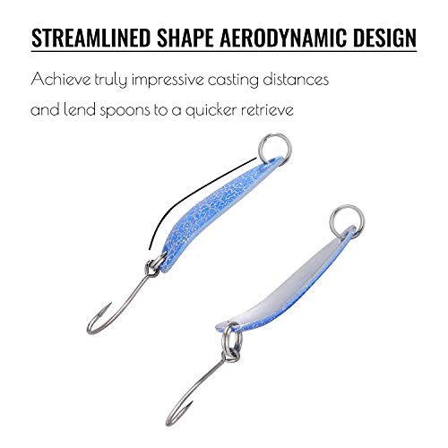 Alta frequenza di morso: design a cucchiaio di trota con colori brillanti, con lamina glitterata inserita, forma di caratteristiche di corsa aggressiva che produce un'azione di oscillazione seducente, tutto questo design può attirare i pesci mordendo facilmente le esche.