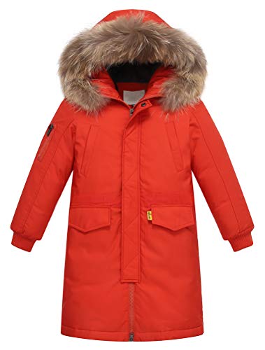 FTCayanz Bambini Giubbotto Piumino Invernale Ragazzi Ragazze Caloroso Cappotto con Cappuccio Rosso 10-11 Anni (per Altezza 140-150 cm)