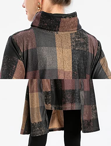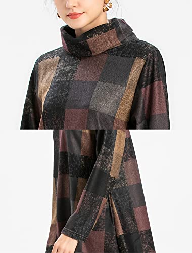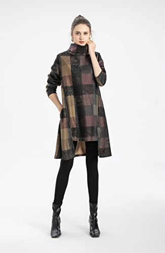 FTCayanz Donna Maglione Vestito Collo Alto Manica Lunga Plaid Pullover Top Porpora L