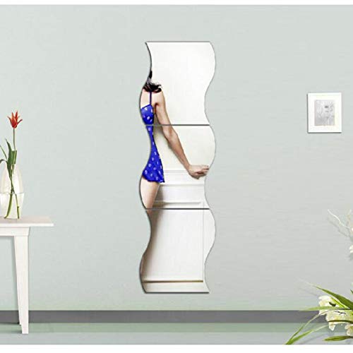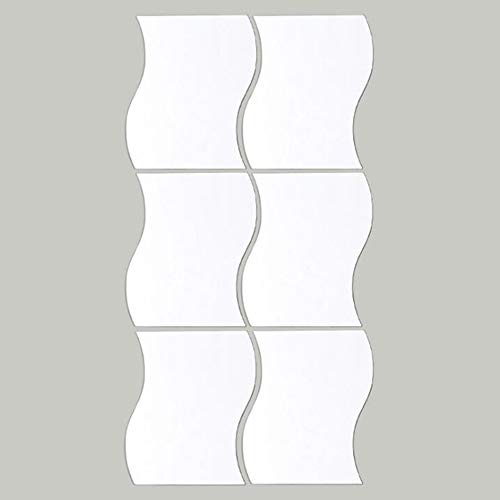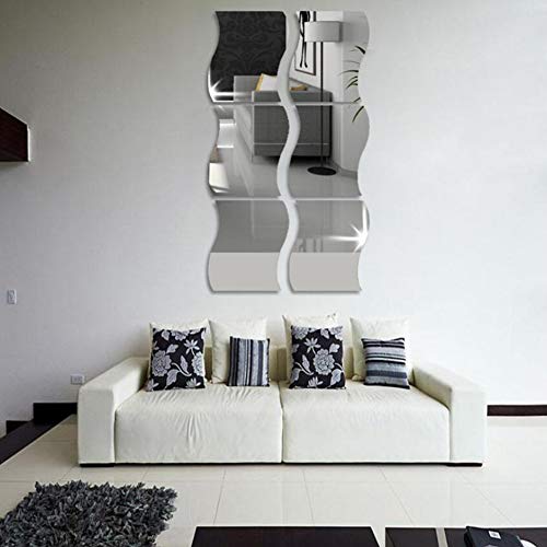 Ftchoice 6pcs 3D Wave Wall Stickers Specchio Adesivi Rimovibili per Camera Decorazione Della Parete 12X10cm argento, 6 pezzi