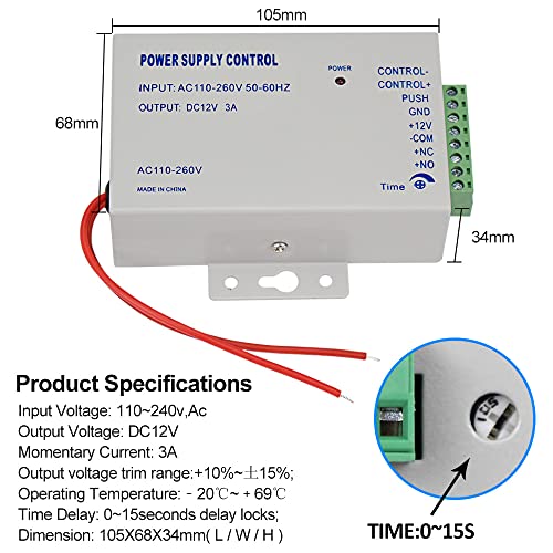 Facile da Mettere in Funzione -- Funziona con il sistema DC12V. 180KG Serratura elettromagnetica con forza di tenuta di 180 / 350 LB. La porta si blocca quando l'alimentazione è attiva, mentre non si blocca quando l'alimentazione è disattivata. Ideale per porte in legno, metallo e vetro.