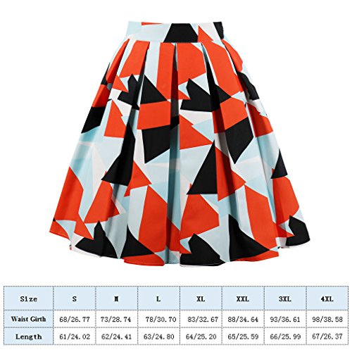 FTVOGUE Vestito a Pieghe Alta Hepburn degli Anni '50 Vintage a Vita Alta da Donna Gonna (L)