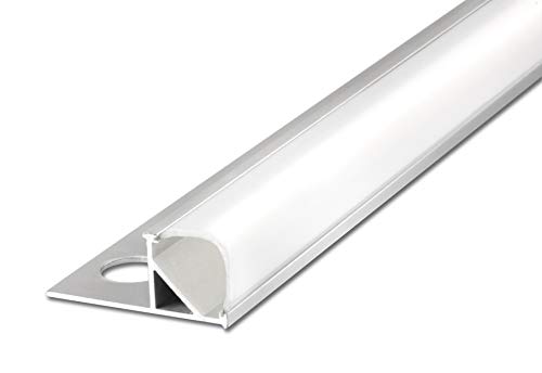 2 m FUCHS Profilo LED 12 mm tondo incandescente Striscia LED per strisce LED, in acciaio inox alluminio anodizzato argento incl. copertura (bianco latte)