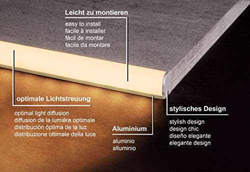 Extra lungo => Il profili per pavimenti LED è lungo 200 cm. È adatto per lunghe strisce di luce. Può essere accorciato con una sega per metalli.