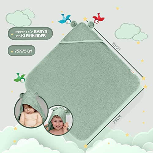 FUCHSUNDPANDA ® Asciugamano con cappuccio per bambini, extra spesso, caldo e morbido, 75 x 75 cm, con cappuccio (100% bambù), con cappuccio, con ottima confezione regalo (rame-verde)