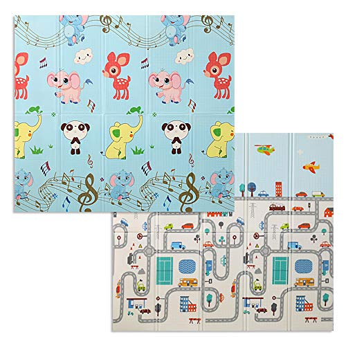 Fudeer Tappetino da Gioco Pieghevole in Schiuma per Bambino Tappetino da Gioco Impermeabile Grande Spesso Tappetino da Gioco Reversibile Portatile Tappeto Antiscivolo Bambini,1,1.8 * 2M*1.5cm