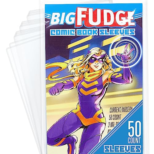 Big Fudge Buste per fumetti d'archivio (dimensioni attuali) Confezione da 50 buste per fumetti per fumetti attuali o riviste 7,25 x 10,5 - Conservazione di fumetti cristallina