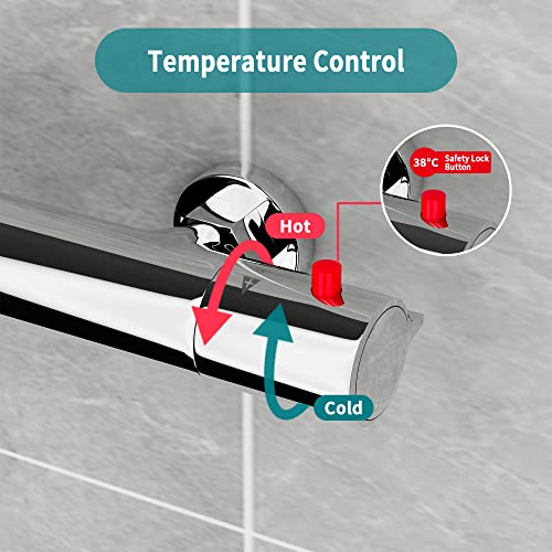 Fugo Miscelatore Termostatico per Doccia, Rubinetto Termostatico Doccia,Design Ergonomico 38°C,Controllo della Temperatura Costante per Bagno