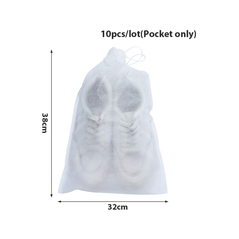 5.Suitable for more functions storage and organization. Specification:Material: Non-Woven ClothColor: WhiteSize (width x height):S:24*38cmM:32*38cmL:32*48cm(there may be a error of 1-2cm) Easy to use: Just tighten the rope and tie a knot.The bags are made of Non-Woven fabric, you only need to pull a rope to complete the storage easily, when your shoes, clothes or other items are not in use, it will be great. Package Contents: 10PCS/set Storage Bags Notes: 1. Due to various factors such as the brightness of the display and the brightness of the light, the actual color of the product may be slightly different from the picture on the