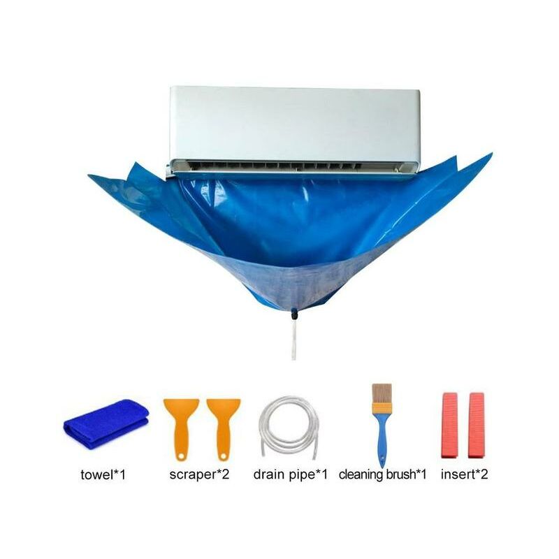 Condizionatore d'aria di Lavaggio Della Copertura a Parete Condizionatore D'aria di Polvere Strumento di PuliziaCaratteristica:1. Materiale di alta qualità: Fatto di DELL'UNITÀ di elaborazione di qualità artificiale impermeabile striscia di tenuta con stretti punti di sutura, questa copertura è durevole e di alta qualità, anti-attrito, impermeabile, facile da pulire.2. Facile da installare: Tirare il coperchio sopra il dispositivo e fissarlo con la cinghia e fibbia. Un sistema integrato di scarico esterno, che ti permette di scaricare l'acqua in un secchio.3. Regolabile: coulisse e coulisse di chiusura di design a il bordo del coperchio per regolare la bocca aperta come ti piace, elastico di pull-tipo di corda per evitare che delle acque reflue da spruzzi durante il processo di aria condizionata trasparente.Tipo: Copertura Condizionatore D'ariaMateriale: Panno + poliuretano fibra elasticaColore: BluAdatta per: 1-1.5 HPAdatto per appendere condizionatori d'aria all'interno di 95