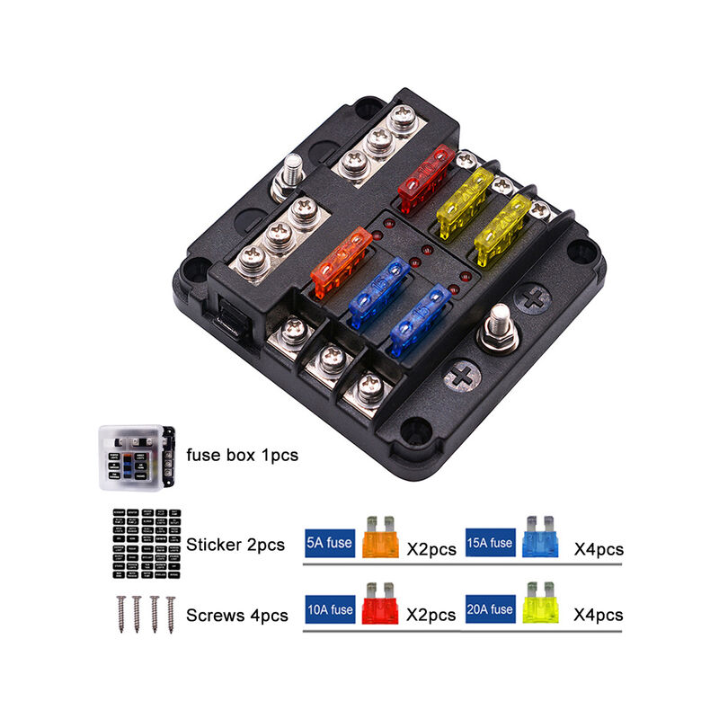 Fuienko - Fusibili 12V 36V per Auto coperchio scatola portafusibili M5 Stud con indicatore luminoso a led 6 vie 12 vie lama per Auto camion barca Trike,CHINA,6 Ways