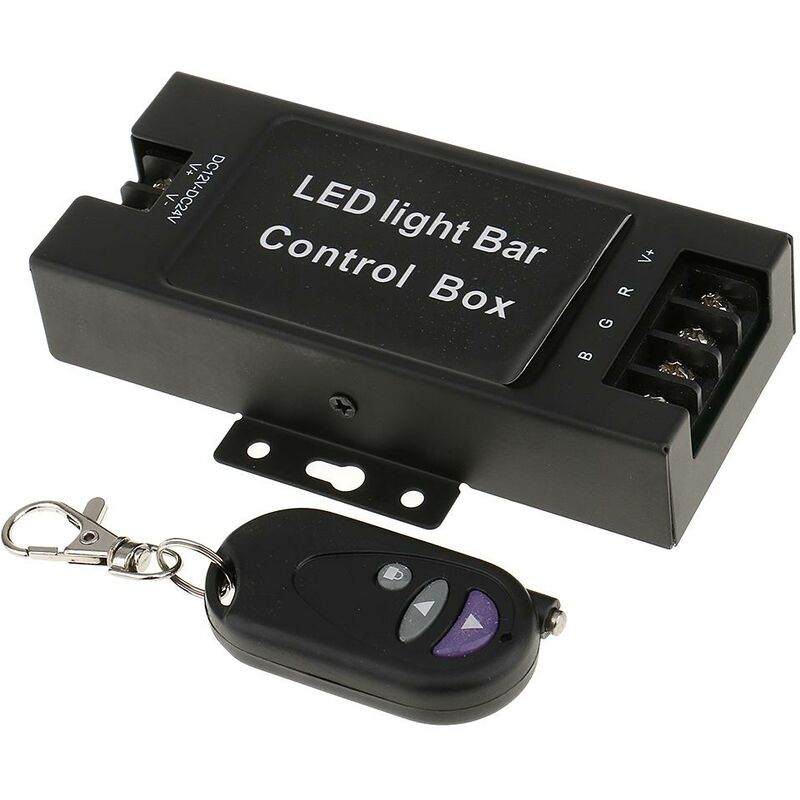 Descrizione: 12-24V HA CONDOTTO LA Luce Bar Contenitore di Batteria Flash Strobe Controller con Telecomando Senza FiliTensione: 12-24VDistanza a distanza: fino a 20mControllo Luce Stroboscopica: 7 modalitàSupporto singola uscita: 400W Specifica: Supporto a tre vie di uscita (max. Potenza): 1200WBatteria Di telecomando: 27A 12VAmpia gamma di tensione di funzionamentoModalità di lampeggioAdatto per Per lungo luci ad alta potenza, le luci di lavoro, luci di marcia diurna auto, luce di cupola dell'automobile, eccFormato per la Luce del LED Scatola di Controllo (LxWxH): ca. 120x55x2 5mm/4.72inch x 2.16inch x 0.98inchFormato per A Distanza Senza Fili (Lxp): ca. 55x2 8mm/2.16inch x 1.10inchColore principale: Nero Come collegare il cablaggio:La fine dei due giunti di collegare la batteria positivo (+) e negativo (-).La fine del quattro articolazioni, connettori la luce positivo (+) e negativo (-). (Comune positivo (+), tre negativi (R-G-B) selezionare.) Cornici E Articoli Da Esposizione
