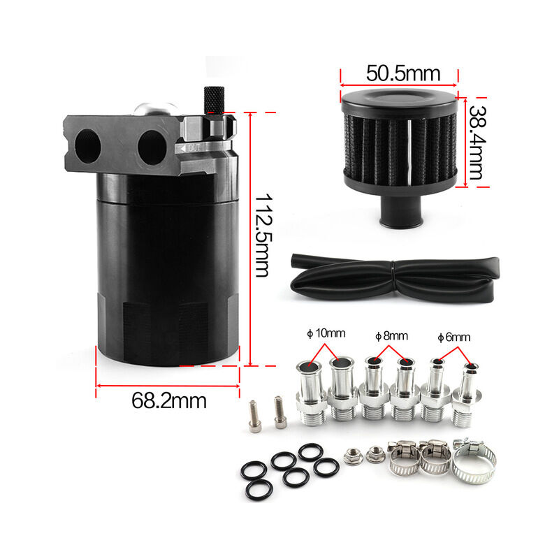 Descrizioni:Fatto di alta qualità in alluminio per una maggiore resistenza e durata nel tempoAnodizzato corpo3/8 "e 9/16" raccordi per tubi flessibiliRimovibile flap per extra filtro supporti di memorizzazioneGarantire la migliore distanza in miglia, migliori prestazioni e più a lungo la vita del motoreCattura olio e fanghi per salvare la vita del motoreUtilizzato come filtro dell'aria per il sistema di ventilazioneBuilt-in asta di livello per controllare il livello del liquidoHardware di montaggio e il tubo adattatoriRimovibile di scarico di fondoSpecifiche tecniche:Colore: neroMateriale del prodotto: lega di alluminio, silicone, in acciaio inoxFormato:5 "ad alta x 3.25" di diametroCornici E Articoli Da Esposizione Includono:1 x olio può1 x filtro aria1 x tubo di olio2 x dadi2 x viti3 x morsetti4 x O-RING6 x connettore