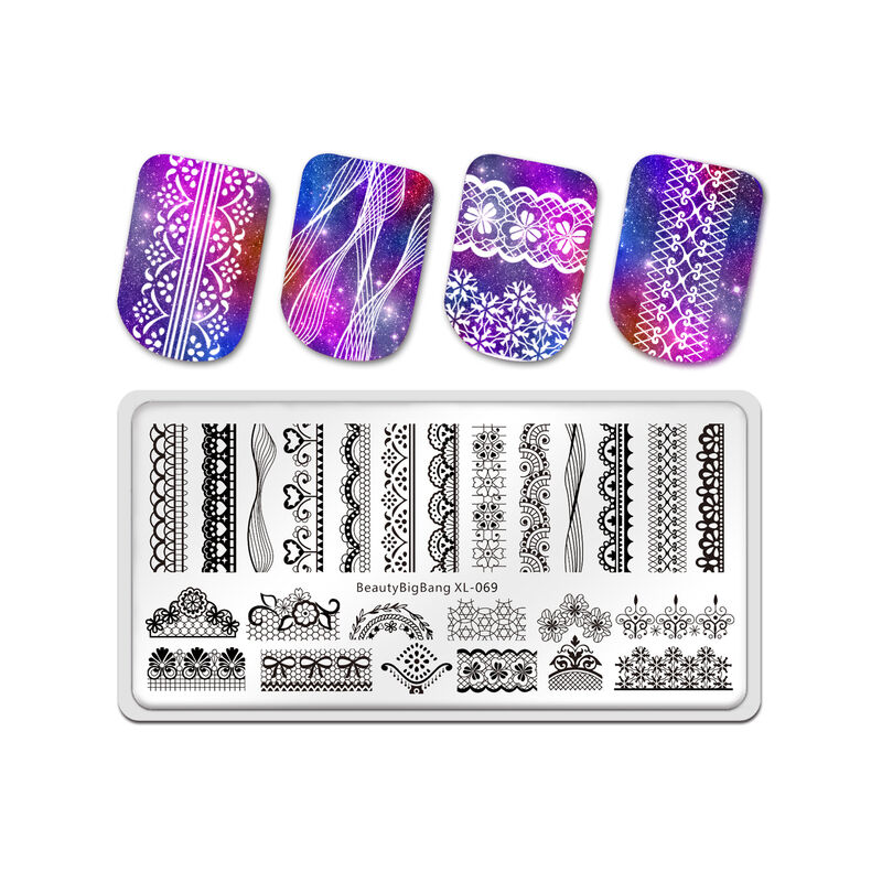 Piatti per timbratura in acciaio inossidabile bella ragazza e fiore donna farfalla immagine Stencil Nail Art Stencil Stamp Mold TemplateSpecifica:Tipo di articolo: piastra per timbratura Nail ArtDimensione: Ca. 6*12 centimetriPeso: 22gIstruzioni:La piastra è schermata da una sottile pellicola protettiva trasparente, si prega di rimuovere la pellicola prima dell'uso, in modo che lo smalto per unghie può essere spostato dallo stamper.Caratteristica:1. Applicare base coat o smalto regolare sull'unghia.2. Applica lo smalto per unghie all'immagine richiesta all'interno di un piatto. (Consigliato: usa lo smalto per unghie in tinta unita, in modo che la trama sia più spessa di altri smalti per unghie)3. Crea un raschietto piegato a oltre 45 gradi e raschia lo smalto eccessivo rapidamente e fortemente da interno a esterno.4. Premere immediatamente lo stamper con un movimento di rotolamento delicato per raccogliere il design. L'immagine viene trasportata sul timbro.5. Timbra l'immagine