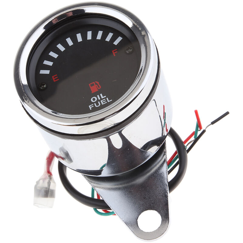 Descrizione: -100% nuovo di Zecca e di alta qualità Del Motociclo Indicatore di Livello Del Carburante. -Quadrante nero, cornice cromata. -Bright blue retroilluminazione A LED indicatori, una facile visualizzazione a tutti gli angoli.-Componenti elettronici di chip ad alte prestazioni. -Facilità di installazione e di alta precisione. -Il funzionamento stabile e affidabile. Specifica: -Materiale: Lega -Colore: Cromato -Diametro: Ca. 6.5 centimetri/2.56 pollici-Lunghezza Del cavo: Ca. 30 centimetri/11.8''-Tensione di funzionamento: DC 12 V-Blu/LED Rosso: indicatore del Livello Dell'olio (come immagine indicata) Cornici e articoli da esposizione Comprende: 1 pezzo Olio Leva Del Carburante Gauge