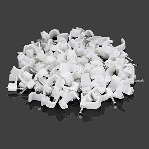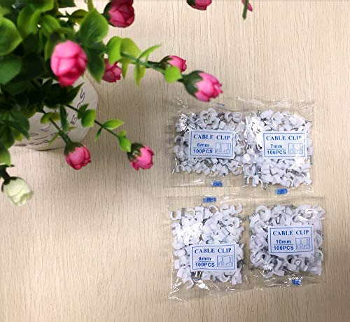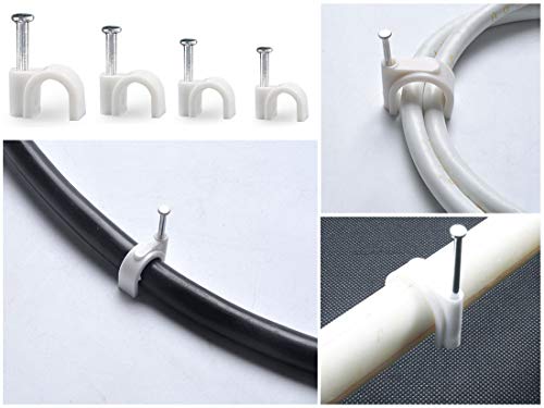 FUJIE 400 Pezzi Fascetta per Cavi Chiodini Fermacavo Bianco Cavo Tondo Clips 6mm, 7mm, 8mm, 10mm per Cavo Elettrico, Ethernet o Altro Cavo