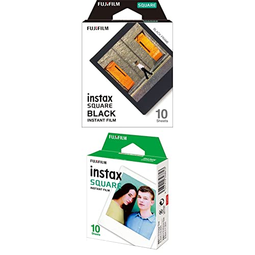 Fujifilm Instax Square Black Frame, Film Pellicola Istantanea, Formato Quadrato, 62x62 mm, Confezione da 10 Foto, Bordo Nero & Square Film 10 Fogli Pellicola Istantanea, Formato 62 X 62 mm, Bianco