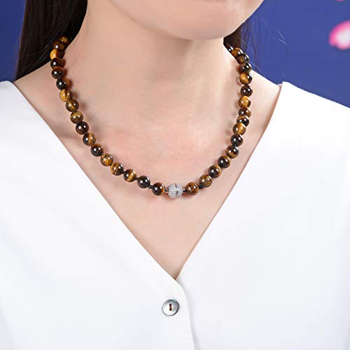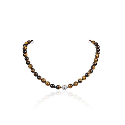 Fukugems Collana in Pietra Naturale per Donne Uomini Gemme Collana 18 Pollici Regalo di Compleanno per Ragazza Amica Tiger Eye Collana 8mm