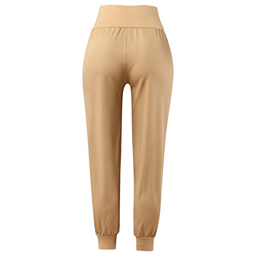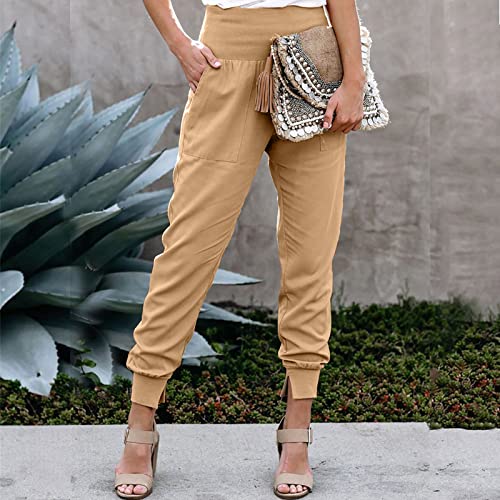 Fulidngzg Pantaloni lunghi da donna in lino, a vita alta, traspiranti, estivi, per il tempo libero, da spiaggia, eleganti e leggeri, A-kaki, XXL