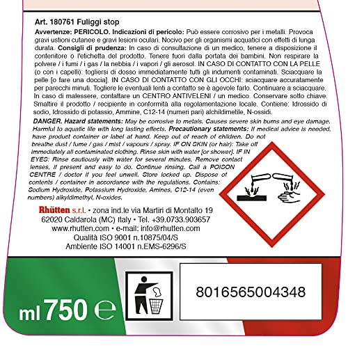 Schiuma detergente per la parte interna di vetri di caminetti, per interno forni e stufe;