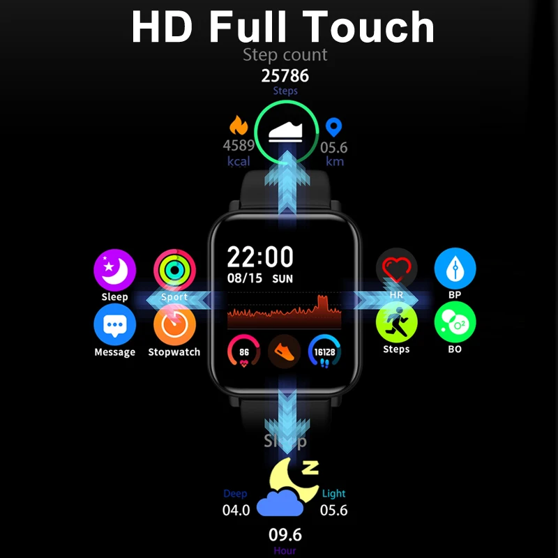 Full Touch Smart Watch Men Women Custom Watch Wallpaper Fashion Fitness Tracker Ip68 Waterproof Sport Smartwatch Blood Pressure