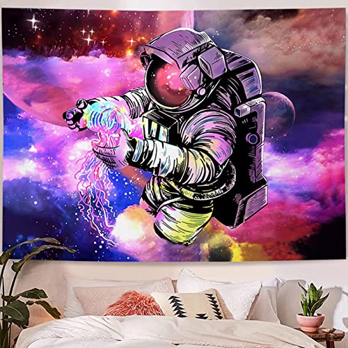 Fullfun Arazzo astronauta psichedelico, da appendere alla parete, motivo astronauta, colore: rosa, viola, con meduse, decorazione per camera da letto, dormitorio, 150 x 200 cm