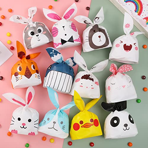 FullJoyHut 60PCS Sacchetti Regalo di Compleanno Sacchetti Buste di Caramella Confetti Plastica Animali Forma Orecchio Coniglio Borsa Sacchetto per Biscotti Dolci Festa Party Confezione Regalo
