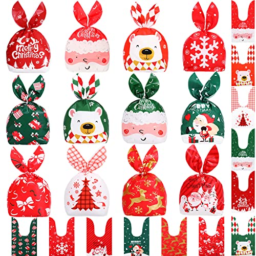 FullJoyHut 240 PCS Sacchetti Regalo di Natale Christmas Sacchetti Buste Caramelle Natalizi Plastica Forma Orecchio Coniglio Borsa Sacchetto Biscotti Dolci Festa Natale Party Confezione Regalo
