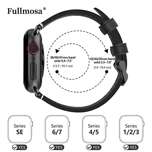 Fullmosa Cinturino Compatibile con Apple Watch 40mm/38mm/41mm, Cinturino in Pelle per Apple Watch Serie 7 6 5 4, per Apple Watch SE, Nero + Fibbia Grigia Fumé
