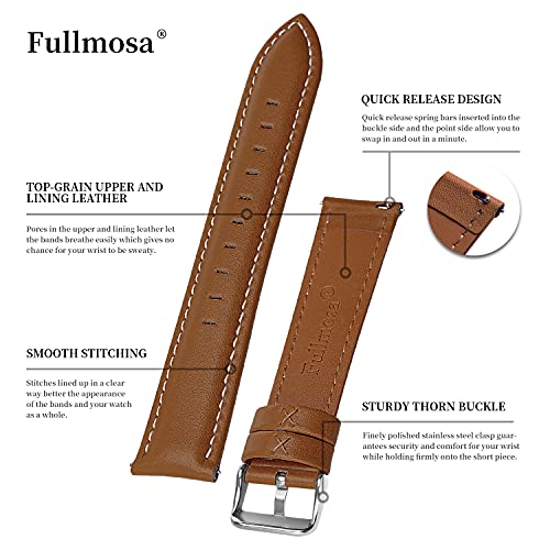 Fullmosa Cinturino in Pelle 22mm per Orologio, Cinturino Smartwatch Compatible con Amazfit GTR 47mm, Huawei Watch GT/GT 2 46mm, Samsung Gear S3 Classic/Frontier, Galaxy Watch 46mm, Marrone