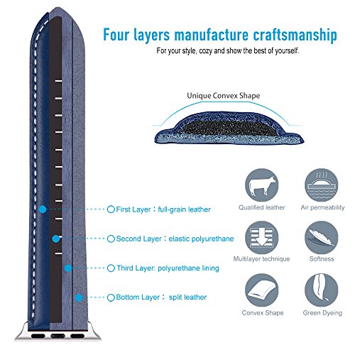 Fullmosa Compatibile Cinturino per Apple Watch 38mm/40mm e 42mm/44mm,6 Colori Bosin Pelle Cinturino/Cinturini di Ricambio per Apple Watch,per iWatch Series 5,4,3,2,1, Uomo e Donna, Blu Scuro