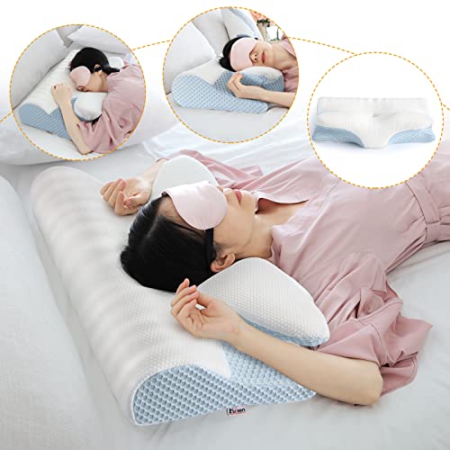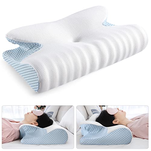 Fuloon Cuscino Cervicale, Cuscino Memory Foam 60x40x12cm Cuscino Cervicale per Dormire,Cuscino Ortopedico Cervicale Cuscino Ergonomico per Dolore alla Spalla Cuscino di Sostegno del Collo