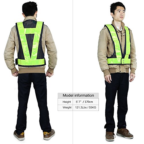 Fuloon - Gilet di sicurezza con 16 luci a LED e strisce catarifrangenti