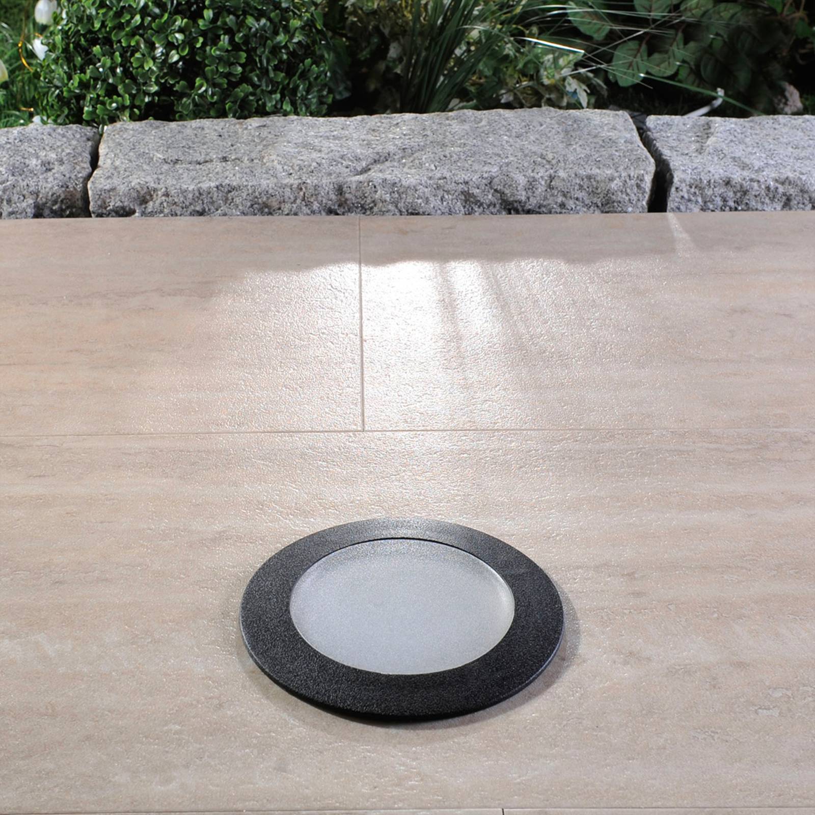 Apparecchio da incasso a pavimento a LED Ceci con funzione di cambio colore - adatto anche per vialetti L'apparecchio da incasso a LED Ceci è progettato per essere robusto e versatile. Può essere usato quasi ovunque all'aperto - anche su tratti con traffico. Il design semplice e rotondo con telaio nero in resina fusa e diffusore in policarbonato smerigliato rimane visivamente sullo sfondo;