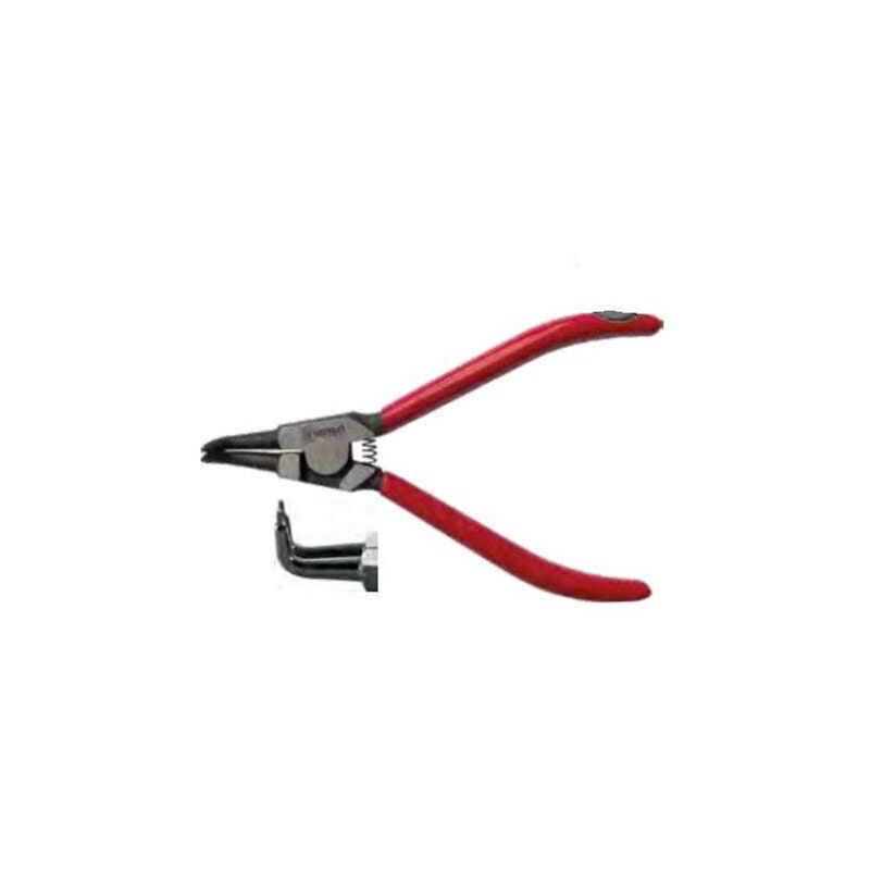 Pinza per anelli elastici in acciaio legato - Fumasi 6pz. Manici rivestiti con guaine in PVC e becchi bruniti per elastici esterni becchi piegati 90° Cod. Capacità mm Lunghezza mm Peso gr 153617 19 - 26 170 145