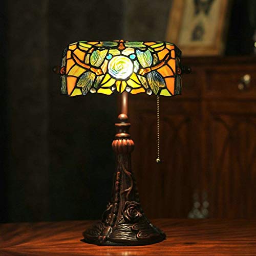 FUMAT Lampada da Tavolo in Stile Tiffany, Lampada da Scrivania Vintage Banchieri in Vetro con interruttore a catena, per Soggiorno Camera da letto Tavolino da caffè